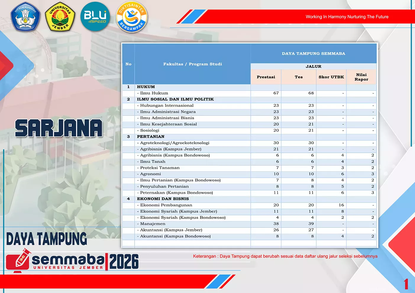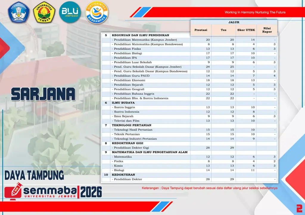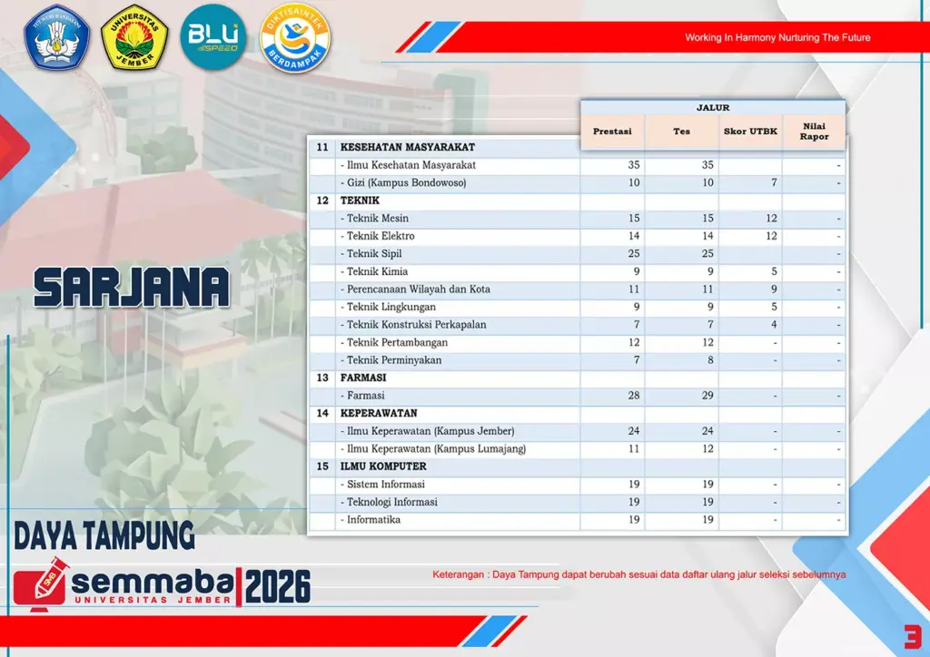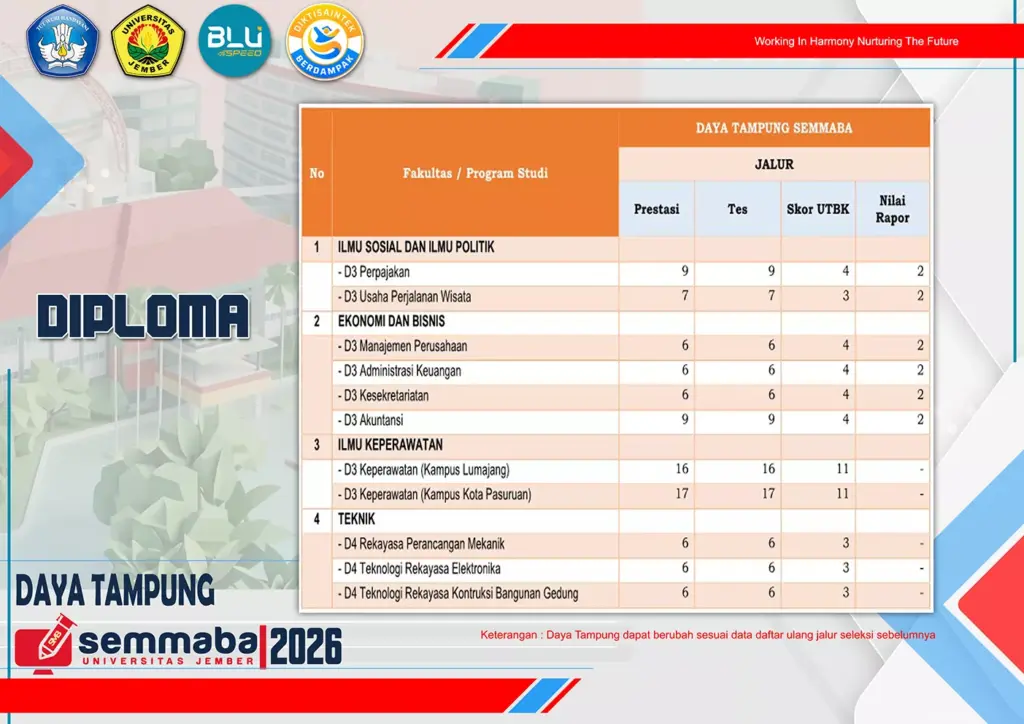 DAYA TAMPUNG SEMMABA UNIVERSITAS JEMBER TAHUN AKADEMIK 2026/2027