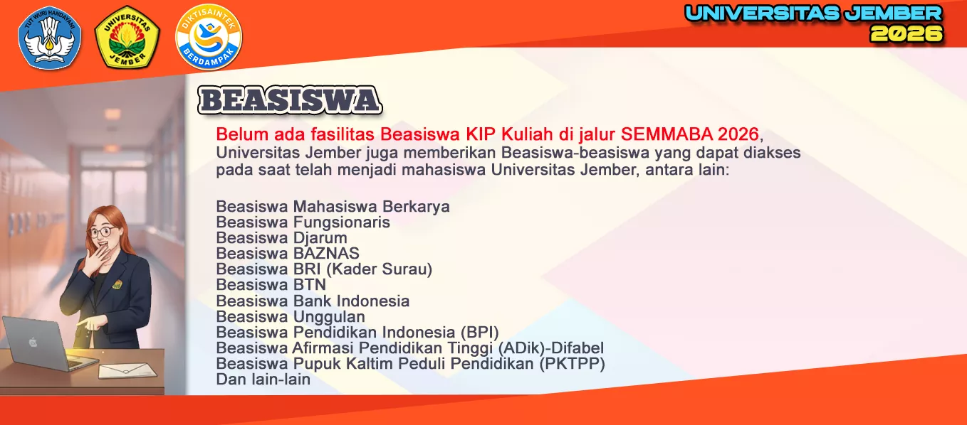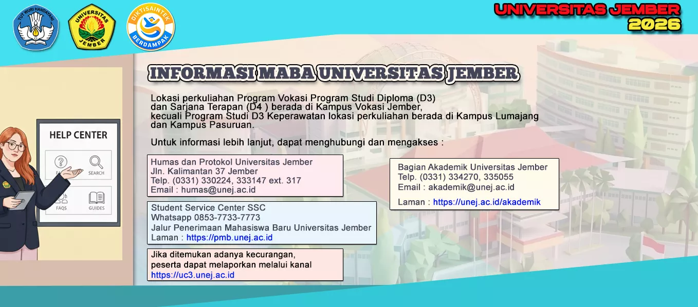 c. Mengikuti Seleksi Mandiri Mahasiswa Baru Universitas Jember (SEMMABA UNEJ) 2026 jalur SEMMABA Prestasi dan SEMMABA Tes.