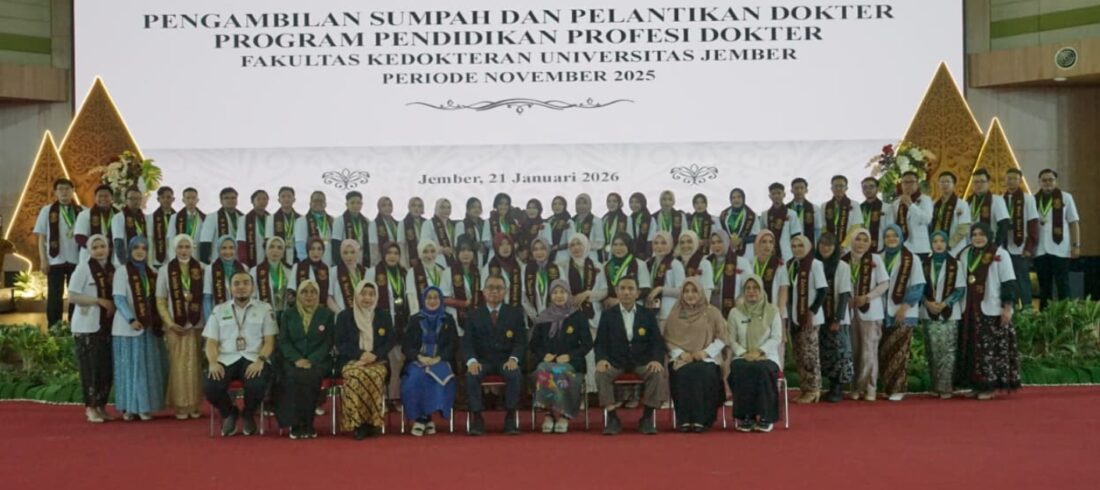 Jember, 21 Januari 2026 Fakultas Kedokteran (FK) Universitas Jember menggelar Pengambilan Sumpah dan Pelantikan Dokter di Auditorium Universitas Jember (UNEJ), Rabu (21/01/2026). Sebanyak 56 dokter baru resmi disumpah dan dilantik dalam prosesi yang berlangsung sakral dan khidmat. Prosesi pengambilan sumpah dipimpin oleh Dekan FK UNEJ,...Read More