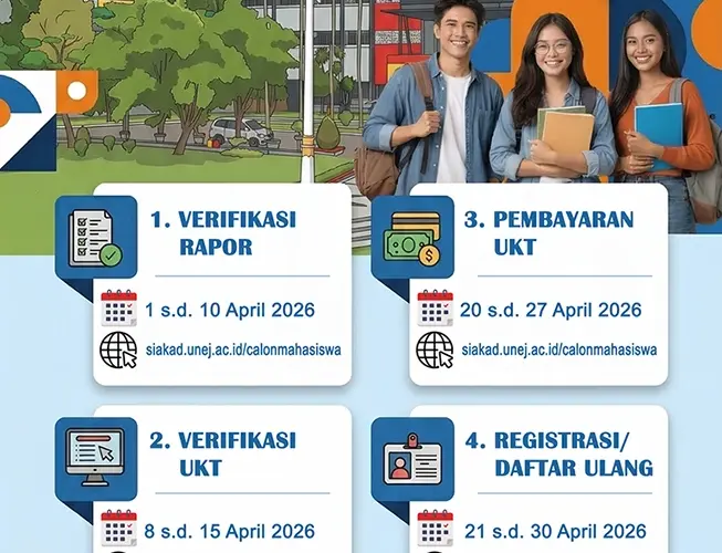 Jember, 1 April 2026 Universitas Jember (UNEJ) menerima 3.367 mahasiswa baru dari jalur Seleksi Nasional Berdasarkan Prestasi (SNBP) tahun 2026. Mereka adalah hasil seleksi dari total jumlah 13.755 siswa dari seluruh nusantara yang memilih UNEJ. Jumlah tersebut merupakan 33 persen dari keseluruhan jumlah mahasiswa baru angkatan tahun 2026 yang rencananya akan diterima oleh UNEJ. Selanjutnya para peserta yang dinyatakan lolos jalur SNBP wajib melaksanakan registrasi ulang. Apalagi peserta yang lolos...