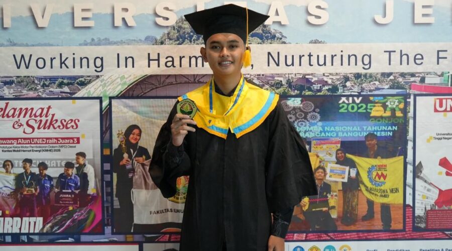 Jember, 24 Januari 2026 Universitas Jember (UNEJ) kembali menggelar upacara wisuda periode VII tahun akademik 2025/2026 di Auditorium Kampus Tegalboto, Sabtu (24/01/2026). Para wisudawan lulusan program doktor, magister, sarjana, dan diploma secara resmi menyandang gelar akademiknya setelah lulus dari Universitas Jember. Di tengah kebahagiaan para wisudawan yang resmi dikukuhkan, terdapat kisah inspiratif pada wisuda periode ini datang dari Teguh Efendi, lulusan Fakultas Teknologi Pertanian (FTP) yang meraih IPK 3,71 dengan...Read More