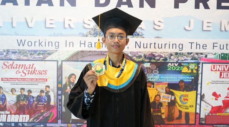 Jember, 18 April 2026 Di antara para wisudawan periode IX UNEJ, sosok Muhammad Aditya Ardyansyah berhasil mencuri perhatian. Mahasiswa Program Studi Biologi, Fakultas Matematika dan Ilmu Pengetahuan Alam (FMIPA) angkatan 2022 ini berhasil meraih prestasi sebagai salah satu wisudawan terbaik dengan capaian IPK tertinggi. Sebagai mahasiswa aktif, berprestasi dan cumlaude, Aditya tercatat meraih medali perak dalam ajang National Youth Science Olympiade Bidang Biologi, mengikuti Program Kreativitas Mahasiswa (PKM) dan Program...Read More