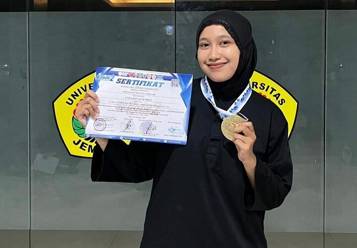 Jember, 10 Desember 2025 Membuktikan bahwa kesibukan perkuliahan bukan penghalang untuk berprestasi di bidang olahraga, Amelia Putri Salsabilah, mahasiswa Program Studi Ilmu Administrasi Bisnis, Fakultas Ilmu Sosial dan Ilmu Politik (FISIP) Universitas Jember (UNEJ) angkatan 2022, berhasil menorehkan prestasi gemilang. Amelia sukses menyabet Juara 1 Tanding Kelas C Putri Dewasa (55kg – 60kg) dalam ajang “Batu Championship 2” Tahun 2025. Kejuaraan pencak silat tingkat nasional yang diselenggarakan di GOR Gajah...Read More