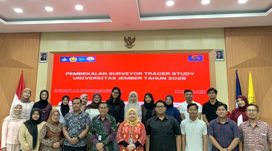 Jember, 13 Februari 2026 UPA Pengembangan Karier dan Kewirausahaan (UPA PKK) Universitas Jember menyelenggarakan kegiatan Pembekalan Calon Surveyor Tracer Study 2026 yang bertempat di Aula Lantai 3 Gedung Kewirausahaan Universitas Jember, Jumat (13/2). Kegiatan ini dihadiri oleh Wakil Rektor III Bidang Kemahasiswaan dan Alumni Universitas Jember, Dr. Fendi Setyawan, S.H., M.H., Kepala UPA Pengembangan Karier dan Kewirausahaan Universitas Jember, Dr. Rokhani, S.P., M.Si., staf UPA Pengembangan Karier dan Kewirausahaan serta...Read More