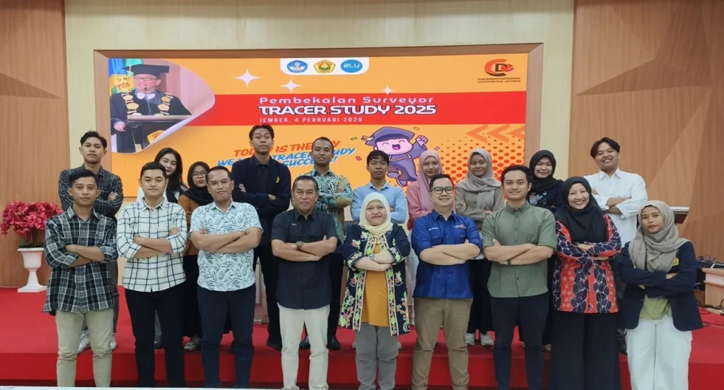 Universitas Jember (UNEJ) menggelar acara Pembekalan Surveyor Tracer Study 2025 yang bertempat di Gedung Kewirausahaan Lantai 3 Universitas Jember.