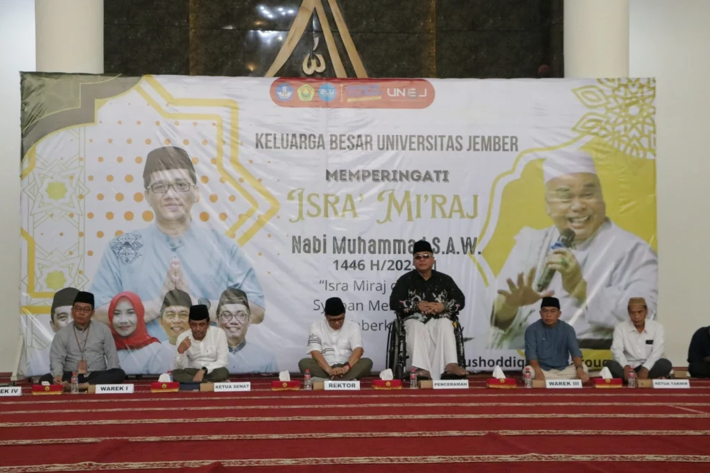 Universitas Jember (UNEJ) menggelar peringatan Isra Mi’raj dengan penuh khidmat di masjid Al-Hikmah kampus Tegalboto yang bertemakan “Isra Mi’raj dan Nisfu Sya’ban Menuju Bulan Keberkahan”.