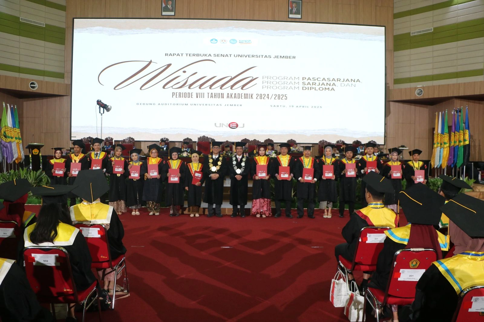 Universitas Jember (UNEJ) kembali gelar upacara wisuda periode 8 yang berlangsung dengan khidmat di Gedung Auditorium Kampus Tegalboto pada Sabtu (19/04/2025).