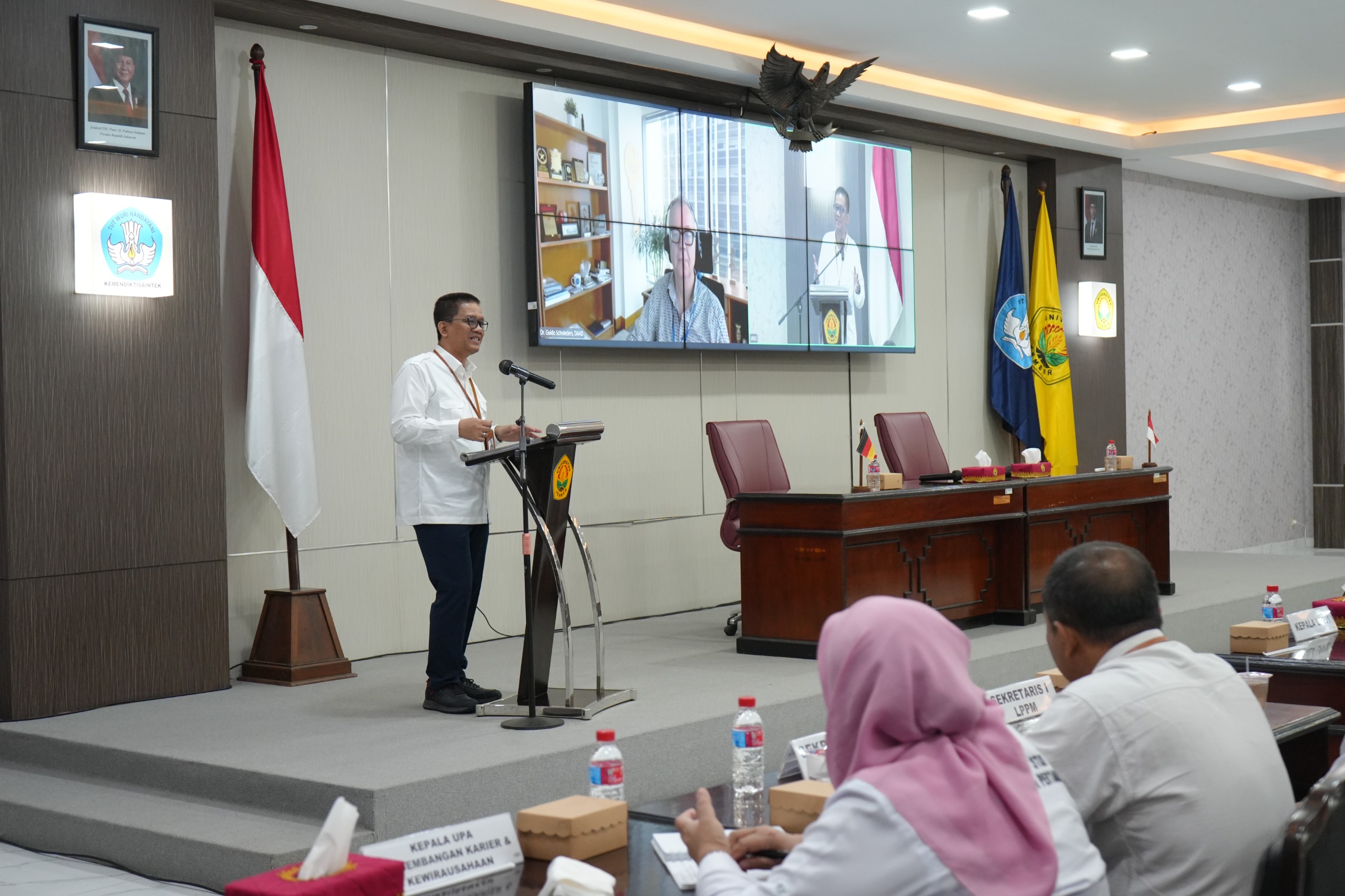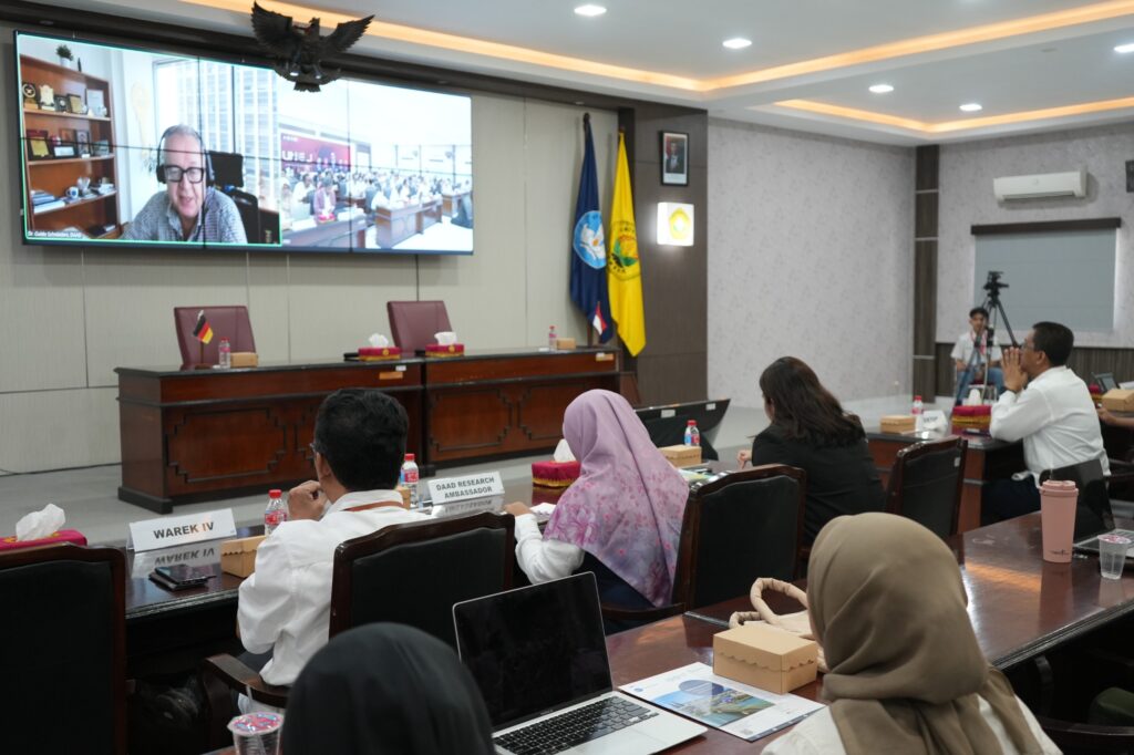 Guido Schnieders hadir secara daring dalam kegiatan sosialisasi program DAAD bertajuk “Your Gateway to Academic and Career Opportunities in Germany” yang digelar khusus untuk mahasiswa dan dosen UNEJ di aula lantai 3 gedung rektorat (22/9/2025). Menurut Guido Schnieders, UNEJ adalah salah satu Perguruan Tinggi di Indonesia yang rutin mengirimkan mahasiswa dan dosen melanjutkan studi maupun melakukan penelitian. Bahkan UNEJ memiliki DAAD Research Ambassador yakni Prof. Kartika Senjarini dari FMIPA UNEJ.