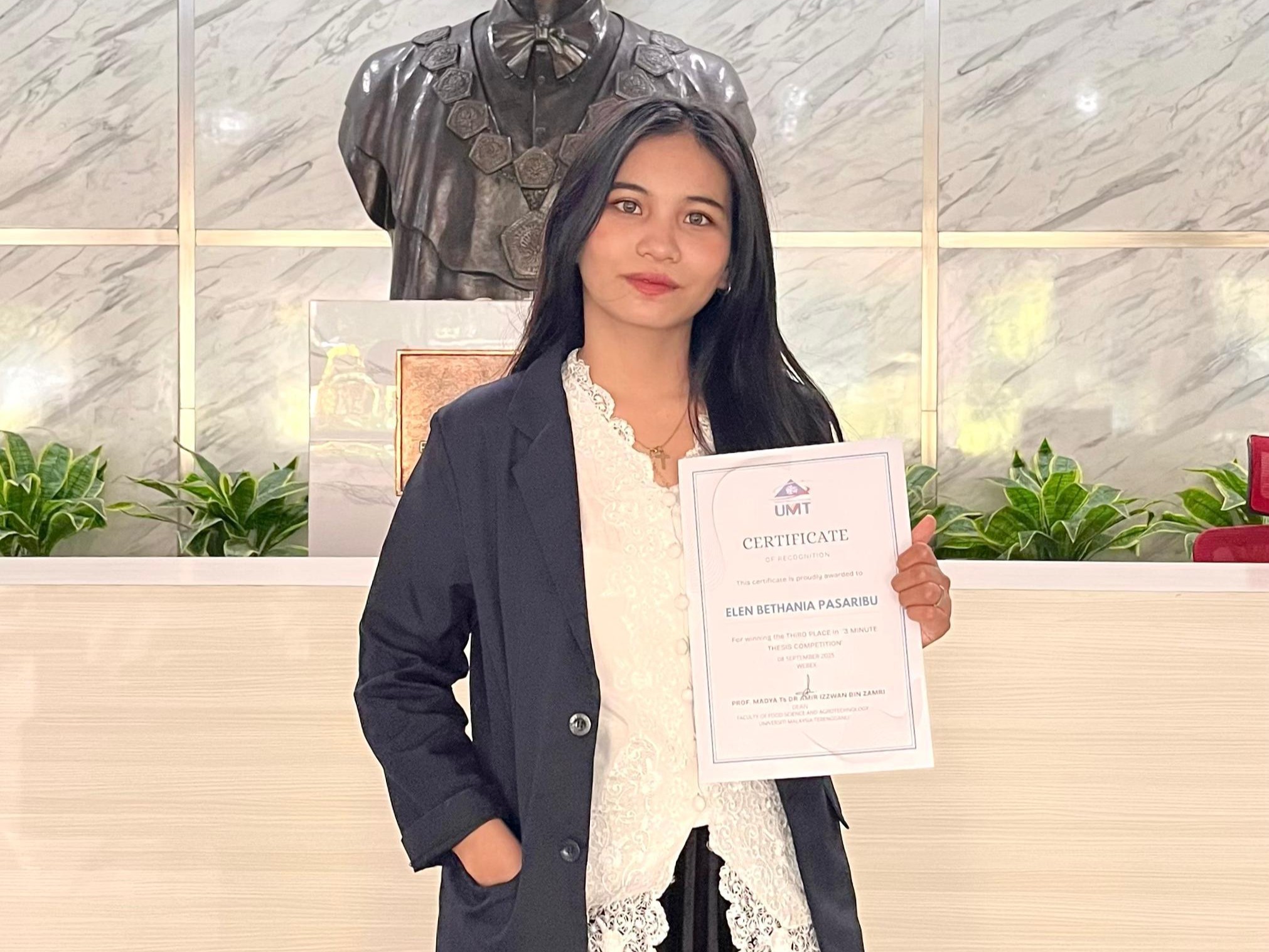 Ia berhasil menyisihkan ratusan pendaftar dan menjadi satu dari 96 mahasiswa se-Indonesia yang proposalnya diterima.Dari total ±707 mahasiswa yang mendaftar program riset bergengsi ini, Elen sukses meraih pendanaan sebesar Rp28 juta untuk penelitiannya. Prestasi ini semakin lengkap karena gagasan riset yang sama juga berhasil membawanya meraih Juara 3 dalam ajang internasional “3 Minute Presentation Competition” yang diselenggarakan oleh Universitas Trengganu Malaysia pada September lalu.