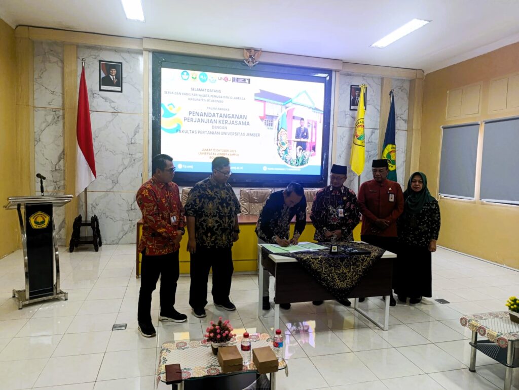 Kerjasama ini akhirnya dapat diwujudkan secara legal melalui penandatanganan kerjasama anatara Faperta UNEJ dan Disparpora Situbondo di kampus UNEJ Bondowoso (10/10). Ekoektasinya kerjasama ini mampu menjadi tonggak kontribusi dalam pembangunan Agroekowisata di Situbondo.