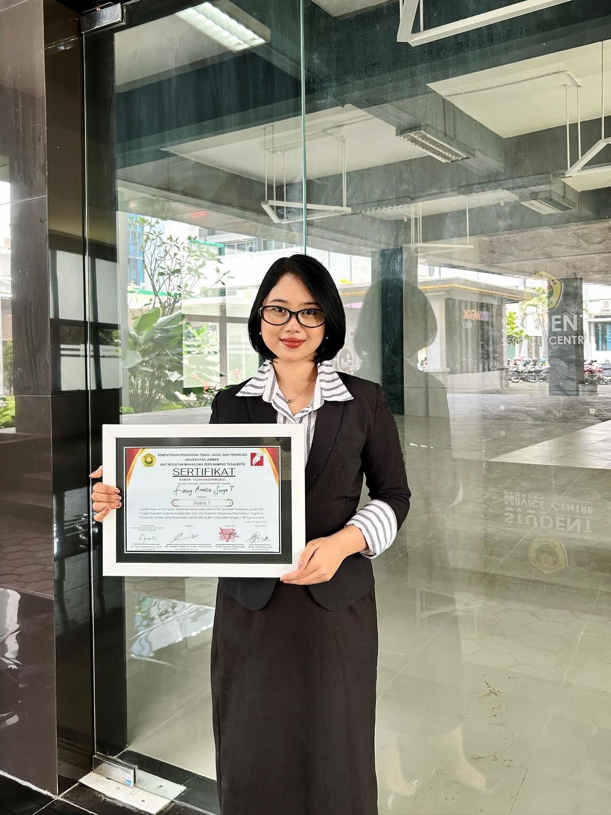 Fanny Amalia Surya Tantular, mahasiswi semester 3 Program Studi Ilmu Hubungan Internasional angkatan 2024, berhasil meraih Juara 1 berkat pengalamannya yang terasah sejak SMP.