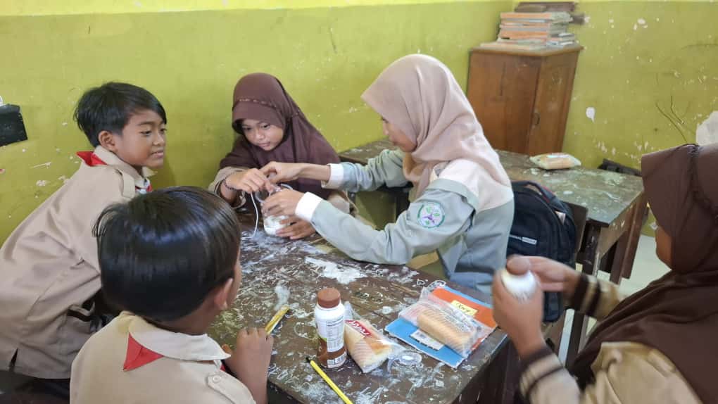 Rangkaian acara diawali dengan penyampaian materi dasar pengelolaan sampah, mulai dari membedakan jenis sampah hingga pemahaman prinsip 3R melalui contoh-contoh daur ulang yang kreatif. Siswa kemudian diajak terlibat dalam sesi praktik langsung. Mereka, didampingi oleh kakak-kakak mahasiswa, secara aktif memilah sampah organik dan anorganik. Antusiasme siswa memuncak saat berhasil melipat sampah menjadi bentuk yang lebih kecil dan membuat prakarya sederhana dari sampah plastik yang mudah ditemukan di sekolah.