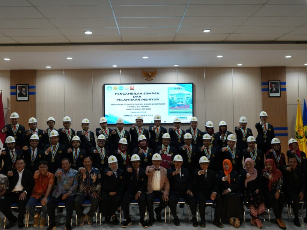 Acara ini menjadi momen berharga bagi para lulusan Program Profesi Insinyur (PPI) yang secara resmi sebanyak 32 mahasiswa PSPPI dikukuhkan, termasuk di antaranya adalah Direktur Politeknik Negeri Jember (Polije). Pelantikan dilaksanakan langsung oleh wakil ketua umum Persatuan Insinyur Indonesia (PII), Rabu (15/10/2025), di Auditorium FT UNEJ.Rektor, Dr. Ir. Iwan Taruna, M.Eng., IPM., ASEAN Eng. mengucapkan selamat kepada para Insinyur baru. Ia berharap lahirnya insinyur baru di UNEJ ini dapat memberikan solusi dari berbagai tantangan yang dihadapi oleh bangsa Indonesia.