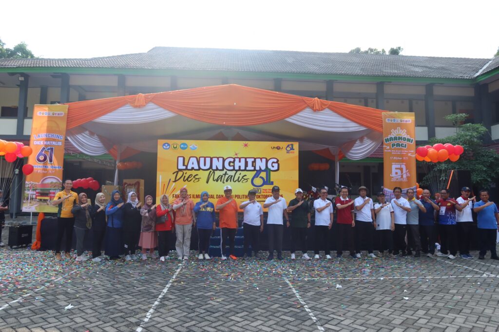Rangkaian kegiatan dalam rangka peringatan Dies Natalis Universitas Jember (UNEJ) ke 61 dimulai ! Ditandai dengan peluncuran logo dan tema dies natalis oleh Rektor bersama Ketua Senat UNEJ pada saat kegiatan Harmoni Pagi di kampus FISIP (17/10/2025). Tema Dies Natalis UNEJ ke 61 adalah Unggul, Sinergi dan Berdampak. Turut mendampingi Rektor dan Ketua Senat meluncurkan logo dan tema dies natalis, seluruh wakil rektor serta Dekan FISIP.