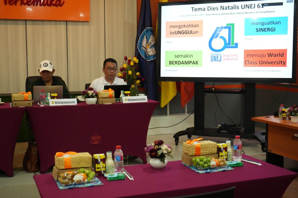 Sementara itu Ketua Panitia Dies Natalis UNEJ ke 61, Prof. Bambang Kuswandi menambahkan, beragam kegiatan sudah disusun oleh panitia, maupun masing-masing dekanat. Kegiatan dibagi menjadi tiga, bidang Unggul seperti kegiatan kolokium hasil-hasil riset dosen UNEJ. Bidang Sinergi yang menampilkan beragam seminar, seni budaya hingga kegiatan olah raga yang mempererat tali silaturahmi.