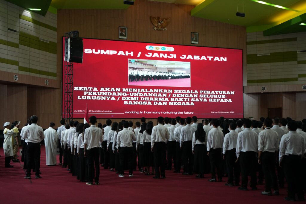 Acara yang dipimpin oleh Rektor UNEJ, Dr. Ir. Iwan Taruna, M.Eng., IPM., ASEAN Eng., ini dilangsungkan pada hari Kamis, (30/10/2025) Gedung Auditorium UNEJ.Acara sakral ini bukan sekadar seremoni, melainkan sebuah kewajiban yang berlandaskan aturan kuat dari pemerintah. Kewajiban ini dipertegas dalam Peraturan Menteri Pendidikan, Kebudayaan, Riset, dan Teknologi Nomor 13 Tahun 2023 tentang Disiplin PPPK, yang secara eksplisit mewajibkan setiap PPPK untuk menghadiri dan mengucapkan sumpah/janji.