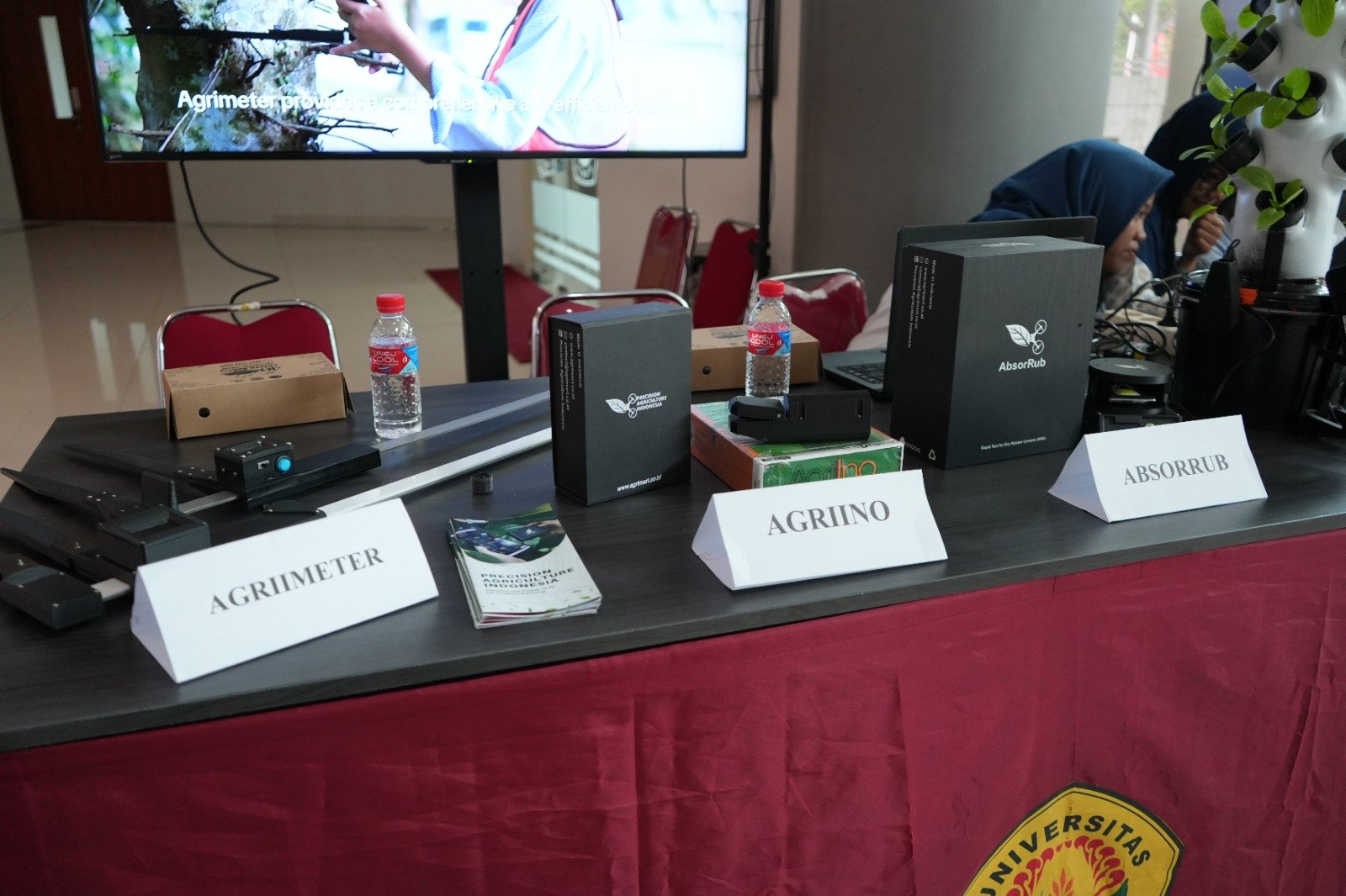 Inisiatif ini dikemas melalui pameran yang menampilkan total 12 produk, menyoroti riset solusi Smart Farm nyata hasil kolaborasi dengan Precision Agriculture Indonesia, sebuah perusahaan rintisan (start-up) yang didirikan oleh inventor internal UNEJ Prof. Bayu Taruna.