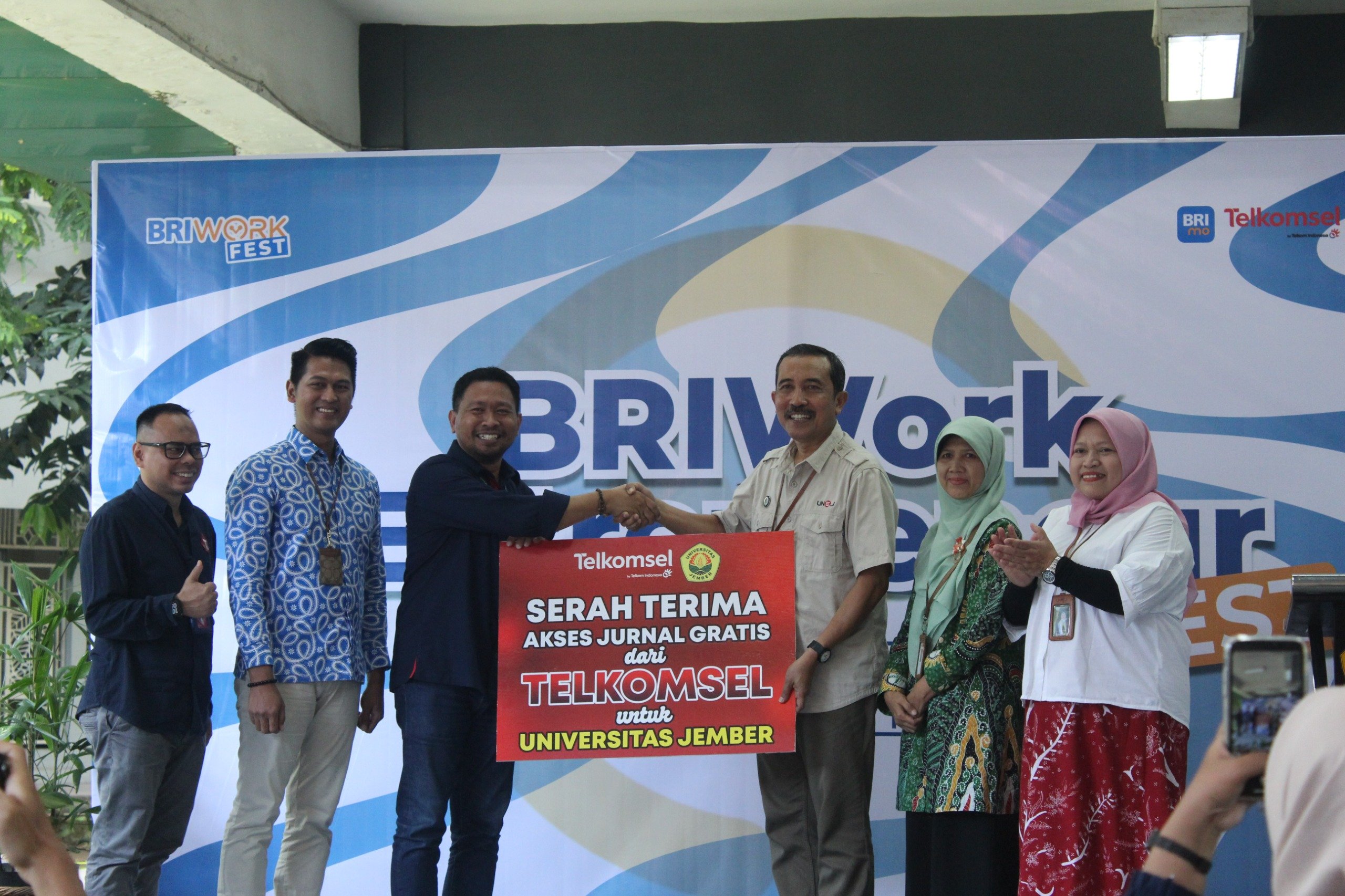 Kepala UPA PKK UNEJ, Rokhani, menyampaikan bahwa acara ini memiliki peran ganda yang krusial, “UPA PKK berkolaborasi erat dengan Telkomsel dan BRI dalam menyelenggarakan festival ini. Kami bersyukur, kolaborasi ini menghasilkan dukungan nyata, seperti Telkomsel yang memfasilitasi 240 akun akses jurnal untuk mahasiswa, serta sumbangan 1.000 voucher berbelanja yang bisa digunakan di BRIWork Entrepreneur Fest,” ujar Rokhani.