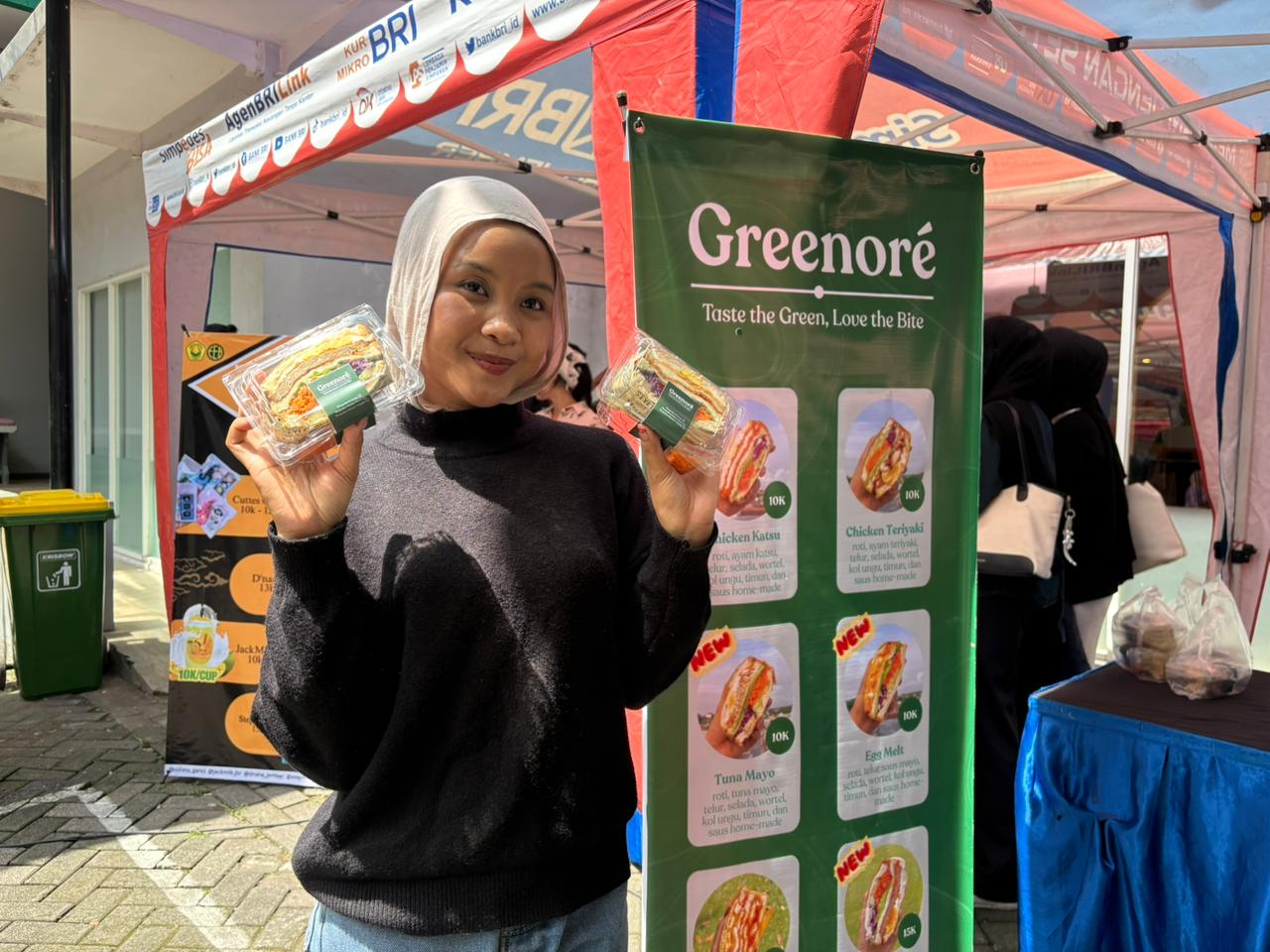 Salah satu partisipan yang menarik perhatian adalah “Greenore”, sebuah bisnis makanan sehat yang dirintis oleh Yuniken, mahasiswa S1 Akuntansi semester lima. Inisiatif usaha ini berawal dari pengalaman pribadinya yang kesulitan mencari pilihan makanan rendah kalori dan mengenyangkan di kantin. Greenore menawarkan roti lapis tiga susun dengan pilihan isian protein seperti ayam katsu atau beef, disandingkan dengan sayuran segar.