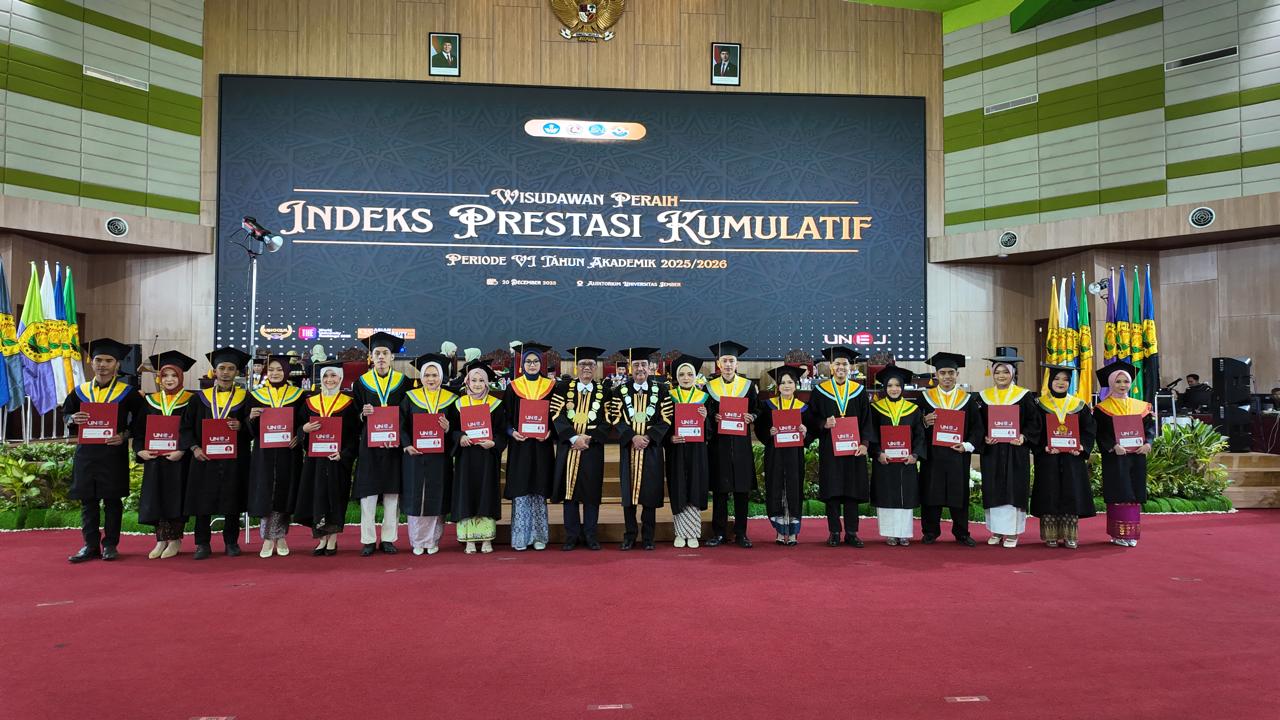 Universitas Jember (UNEJ) kembali mengukuhkan 800 wisudawan dalam prosesi Wisuda Periode VI Tahun 2025/2026 di Auditorium UNEJ.