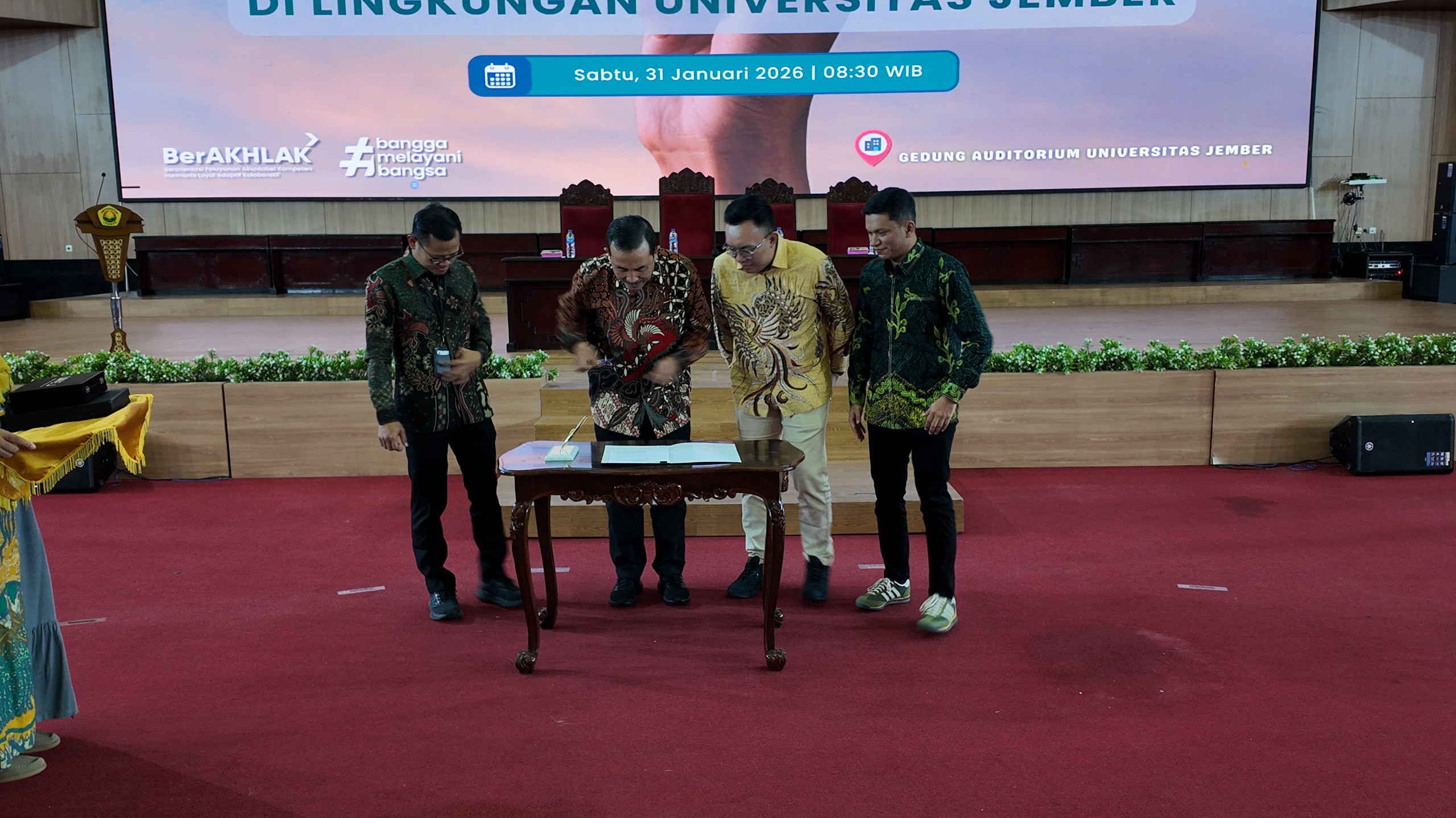 Sebanyak 906 Pegawai Pemerintah dengan Perjanjian Kerja (PPPK) Universitas Jember (UNEJ) mengikuti kegiatan Sosialisasi Program PT TASPEN (Persero) kegiatan ini sekaligus ditandai dengan penandatanganan kerja sama antara UNEJ dan PT TASPEN (Persero) yang digelar di Auditorium Universitas Jember, Sabtu, (31/01/2026).