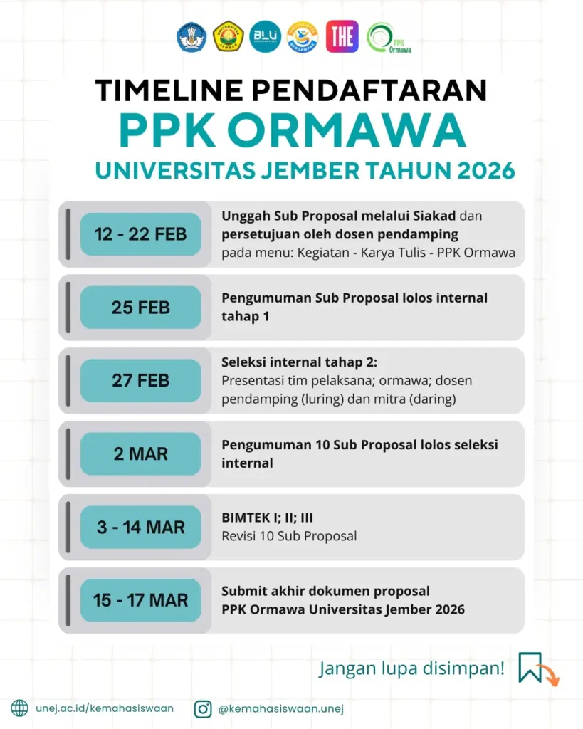 TIME LINE PENDAFTARAN PPK ORMAWA TINGKAT UNIVERSITAS JEMBER TAHUN 2026
