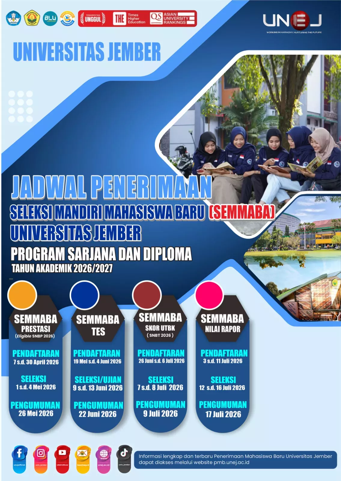 PENERIMAAN MAHASISWA BARU PROGRAM SARJANA, SARJANA TERAPAN DAN DIPLOMA JALUR MANDIRI (SEMMABA) UNIVERSITAS JEMBER TAHUN 2026