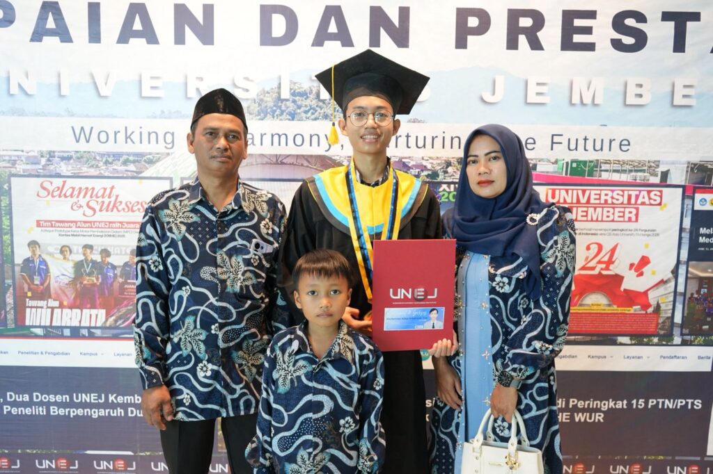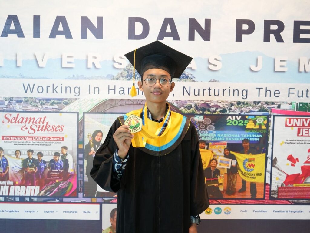 Di antara para wisudawan periode IX UNEJ, sosok Muhammad Aditya Ardyansyah berhasil mencuri perhatian.