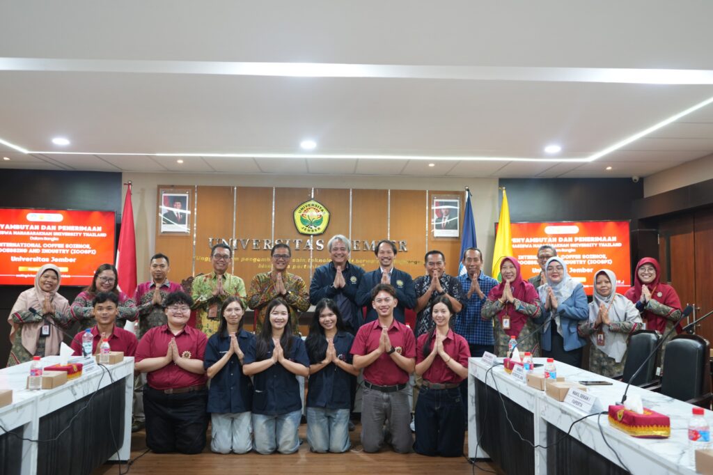 Universitas Jember (UNEJ) secara resmi menerima delegasi mahasiswa dari Mahasarakham University (MSU), Thailand, untuk mengikuti program International Coffee Science, Processing and Industry (ICOSPI) 2026. Program ini tidak hanya menjadi ajang pertukaran akademik, tetapi juga menghadirkan pengalaman pembelajaran berbasis praktik.Penerimaan delegasi dilaksanakan pada Kamis (23/4) di Ruang Sidang Lantai II Rektorat UNEJ. Kegiatan ini dihadiri oleh jajaran pimpinan universitas, antara lain Rektor, Wakil Rektor IV, Dekan Fakultas Pertanian dan Fakultas Teknologi Pertanian (FTP), para Wakil Dekan, serta perwakilan Kantor Urusan Internasional dan koordinator program studi terkait. Agenda kegiatan meliputi penyambutan resmi, pengenalan institusi, serta penguatan komitmen kerjasama akademik antara kedua perguruan tinggi.