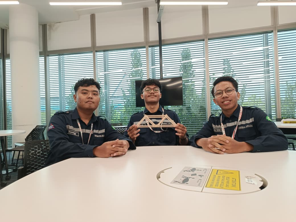 Selain itu, bahan dasar karya jembatan mereka juga menjadi faktor penting dalam penilaian. Sesuai aturan lomba, material yang digunakan adalah kombinasi antara kayu balsa dan kayu bass yang disambungkan dengan lem adhesive. Namun, jumlah kayu yang diberikan sangat terbatas sehingga menguji kemampuan manajemen material setiap tim. “Yang membuat kami unggul juga adalah manajemen kayu. Kami menggunakan tipe kayu sesuai kebutuhan tiap bagian jembatan, sehingga struktur lebih efisien dan kuat,” imbuh Haydar.